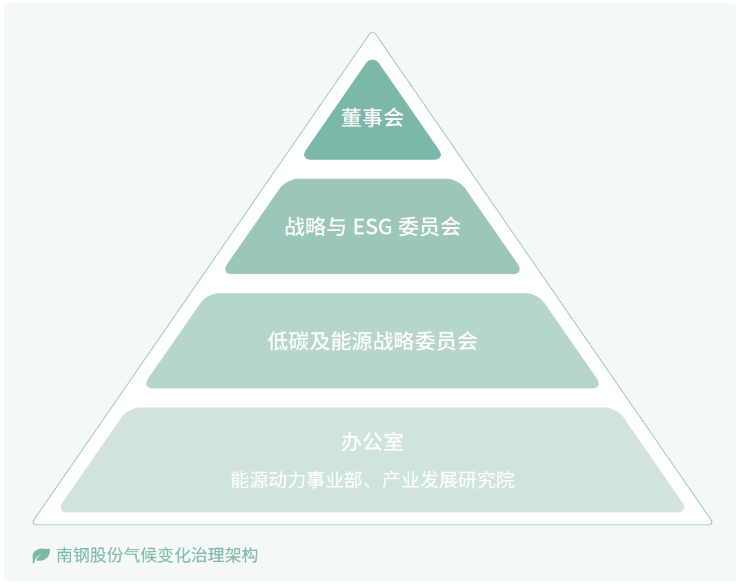 公司董事會下設戰略與ESG委員會,并成立由高級管理層、相關部門負責人和外部專家為主要成員的低碳及能源戰略委員會,負責制定和實施公司低碳及能源戰略,統籌相關工作推進,助力“雙碳”戰略落地。公司董事長是公司氣候治理的最高負責人。