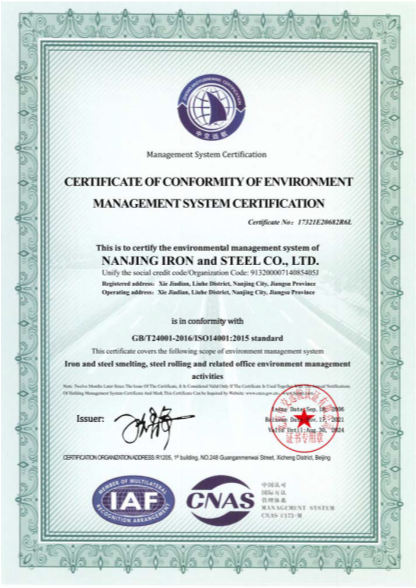 相關政策:南京鋼鐵股份有限公司生態環境聲明